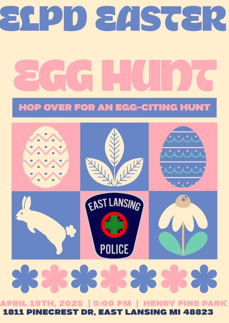 The East Lansing Police Department (ELPD) is hosting its annual Easter Egg Hunt tonight, Saturday, April 19 at 5 p.m. The event will be held at Henry Fine Park in East Lansing.