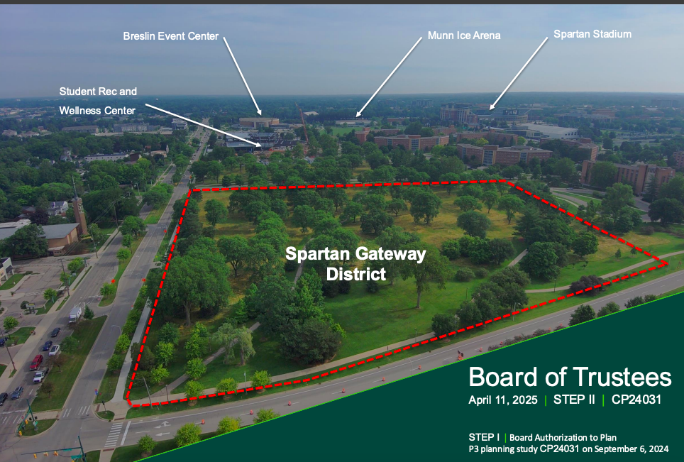 Earlier this year, MSU officials unveiled conceptual plans for the Spartan Gateway District, a massive project on campus that includes a sports arena, hotel, apartment complex, retail space and more. Homeowners who live near the site believe that the project will make it harder to get in and out of their neighborhood, and worry MSU is not considering revisions to the project that address their concerns. Read Managing Editor Luke Day’s story about the Gateway project and resident concerns.