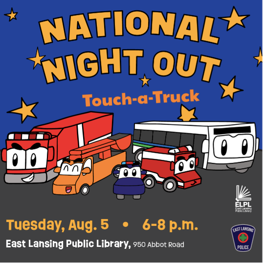 Community members are invited to the East Lansing Public Library parking lot Tuesday, Aug. 5 for the annual “Touch-a-Truck” event from 6-8 p.m. At the event, attendees will be allowed to explore fire trucks, police cruisers, construction vehicles and more. The event will also include police dogs and ELPD officers serving hot dogs. For more information, read the city’s press release.