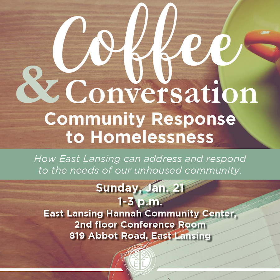 The East Lansing Human Rights Commission (HRC) will host its next Coffee & Conversation session on Sunday (Jan. 21) from 1-3 p.m. at the Hannah Community Center. This month’s topic is “How East Lansing Can Address and Respond to the Needs of Our Unhoused Community.” See more information here.